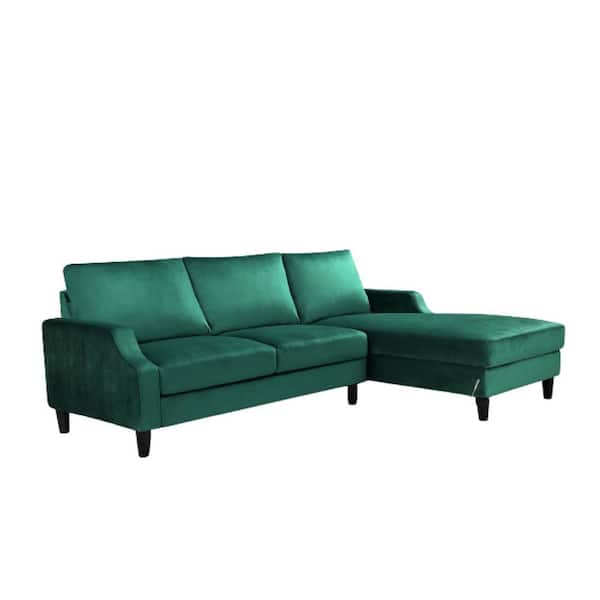 Sophia 2 Piece Green R Velvet 3 Seats Right Facing Sectional Sofa with Removable Cushions