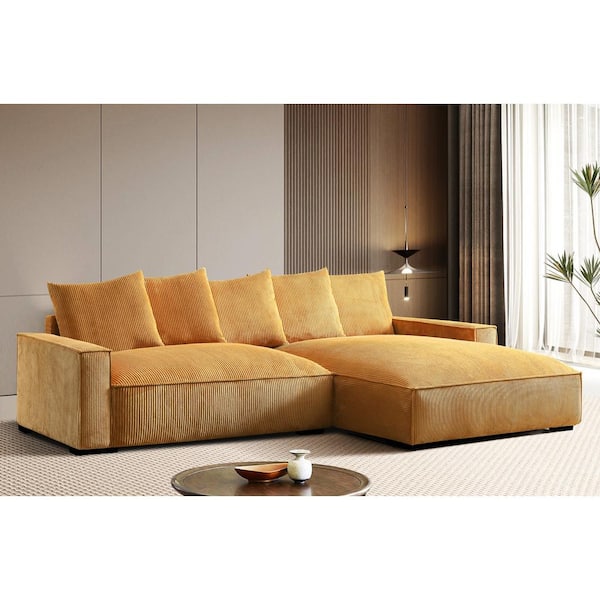 US Pride's Collection 107 in. Arm Velvet L Shaped Leather Modern Luxe Feather Sectional Sofa in Ginger