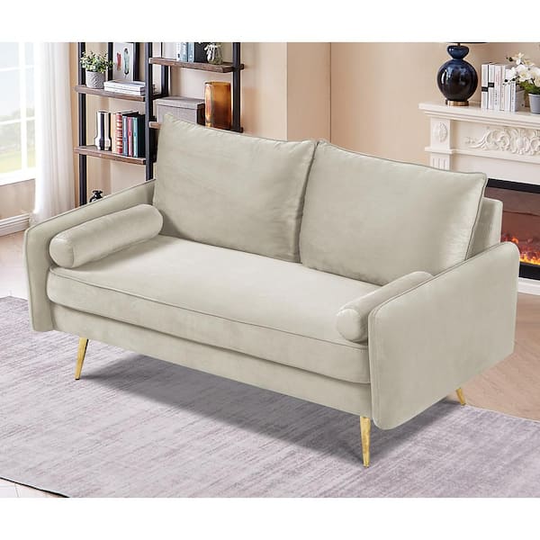 Villeda 58 in. Ivory Solid Velvet 2-Seater Loveseat with Metal Feet