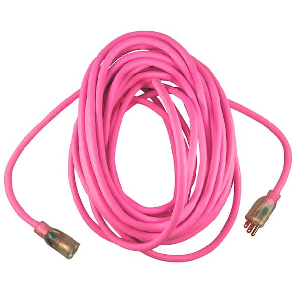 40 ft. 14/3 Fluorescent Lighted Indoor/Outdoor Extension Cord, Pink