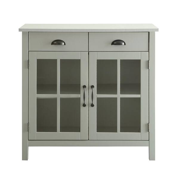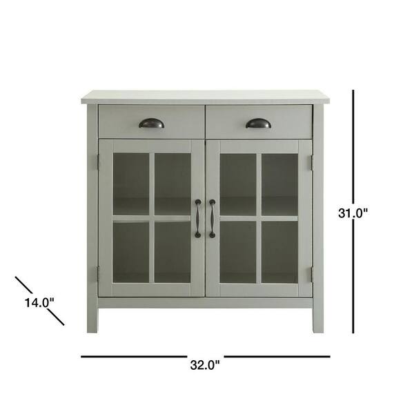 Olivia White Accent Cabinet, 2-Glass Doors and 2-Drawers