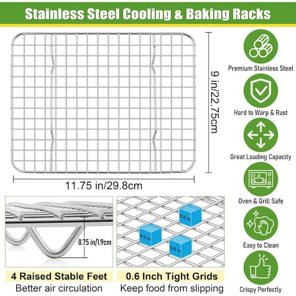 2 Pack Stainless Steel Cooling Rack Set Metal Wire Oven Racks Rust Free Dishwasher Safe for Baking Roasting