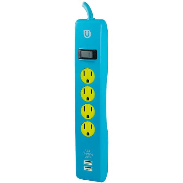 4 ft. 4-Outlet and 2 2.1 Amp USB Port Power Strip, Blue