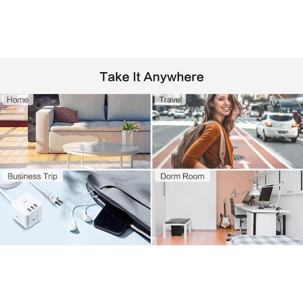 • Compact cube design with 3 AC outlets and 2 USB ports