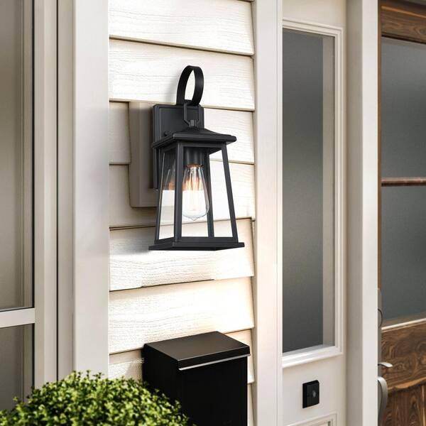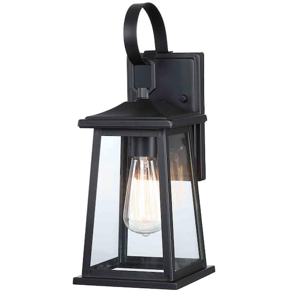 1-Light Black Outdoor Wall Lantern Sconce with Clear Glass