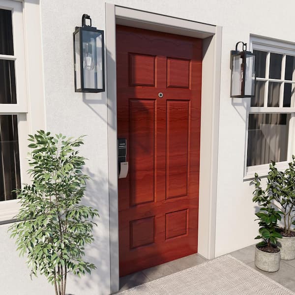 1-Light Matte Black Hardwired Large Outdoor Wall Lantern Sconce(2-Pack)
