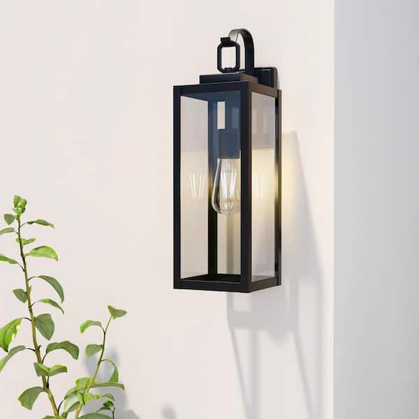 1-Light Matte Black Hardwired Large Outdoor Wall Lantern Sconce