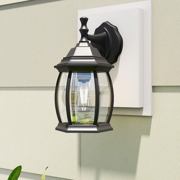1-Light Textured Black Not Solar Outdoor Wall Lantern Sconce with Clear Glass