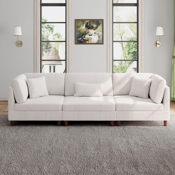 112.1 in. Straight Arm 3-Piece Corduroy Upholstered 3-Seater Sectional Sofa in Beige
