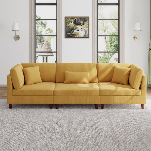 112.1 in. Straight Arm 3-Piece Corduroy Upholstered 3-Seater Sectional Sofa in Orange