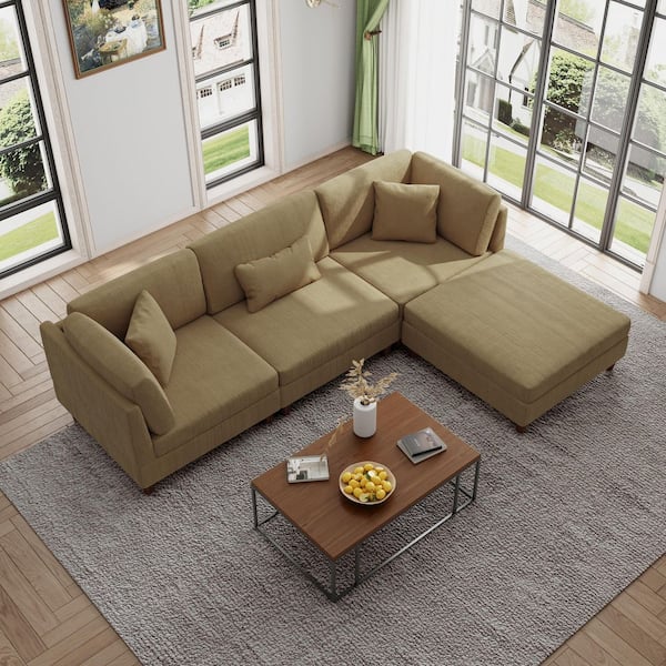 112.1 in. Straight Arm 4-piece Corduroy Upholstered L-Shaped Sectional Sofa in Camel