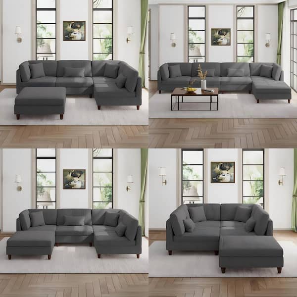112.1 in. Straight Arm 5-Piece Corduroy Upholstered Modular Free Combination Sectional Sofa in Gray with Ottoman