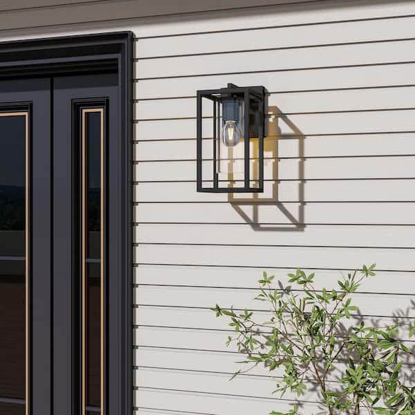 12.2 in. Black Hardwired Outdoor Wall Light Lantern Sconce with No Bulbs Included with Circle Clear Glass