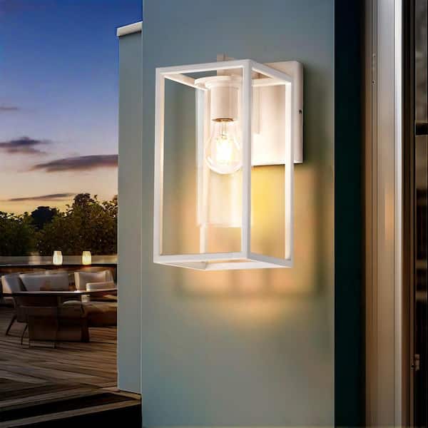 12.2 in. White Hardwired Outdoor Wall Light Lantern Sconce with No Bulbs Included with Circle Clear Glass