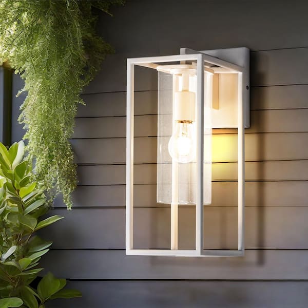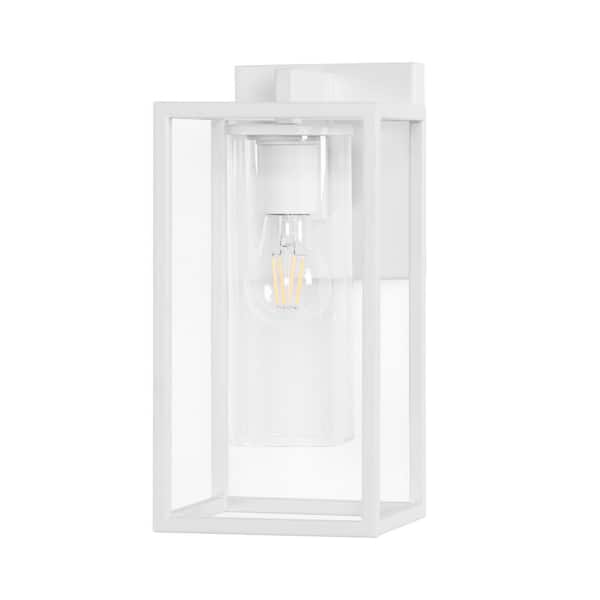 12.2 in. White Hardwired Outdoor Wall Light Lantern Sconce with No Bulbs Included with Rectangle Clear Glass