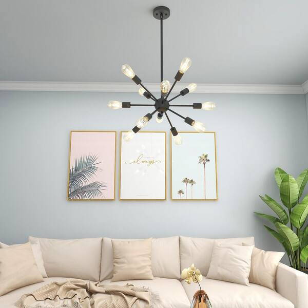 12-Light Matte Black Sputnik Sphere Chandelier without Shade
