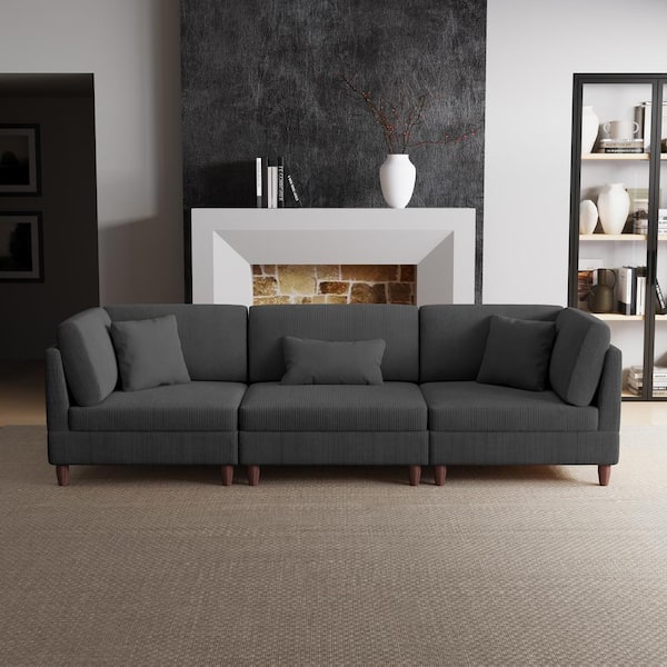 120.5 in. Straight Arm 3-Piece Corduroy Upholstered 3-Seater Sectional Sofa in Gray