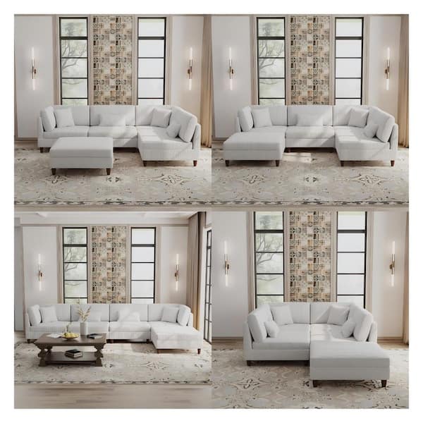 120.5 in. Straight Arm 5-Piece Corduroy Upholstered Modular Free Combination Sectional Sofa in. Beige with Ottoman