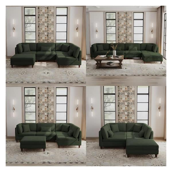 120.5 in. Straight Arm 5-Piece Corduroy Upholstered Modular Free Combination Sectional Sofa in. Green with Ottoman