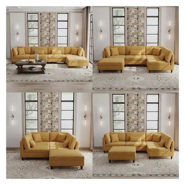 120.5 in. Straight Arm 5-Piece Corduroy Upholstered Modular Free Combination Sectional Sofa in. Orange with Ottoman