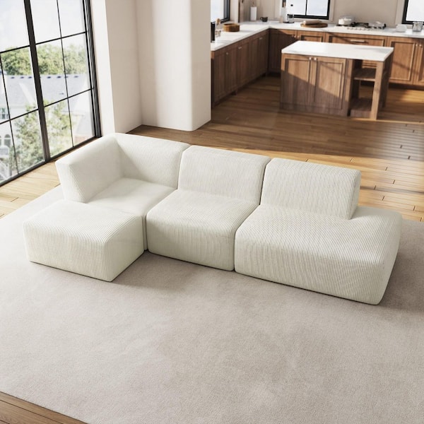 121.15 in. Square Arm 4-Piece Corduroy Modular Free Combination Sectional Sofa in Beige with Ottoman