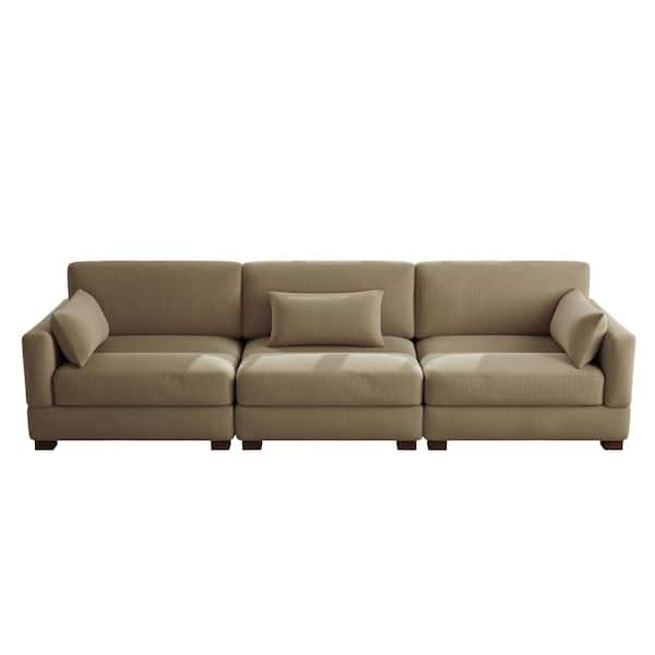 123 in. Square Arm 3-Piece Corduroy Upholstered 3-Seater Sectional Sofa in Camel