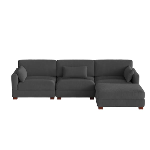 123 in. Square Arm 4-Piece Corduroy Upholstered L-Shaped Sectional Sofa in Gray