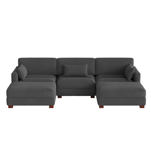 123 in. Square Arm 5-Piece Corduroy Upholstered U-Shaped Sectional Sofa in Gray