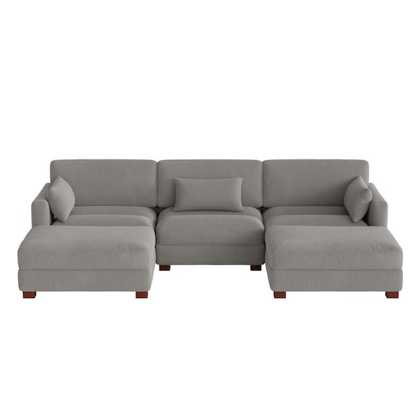 123 in. Square Arm 5-Piece Corduroy Upholstered U-Shaped Sectional Sofa in Light Gray