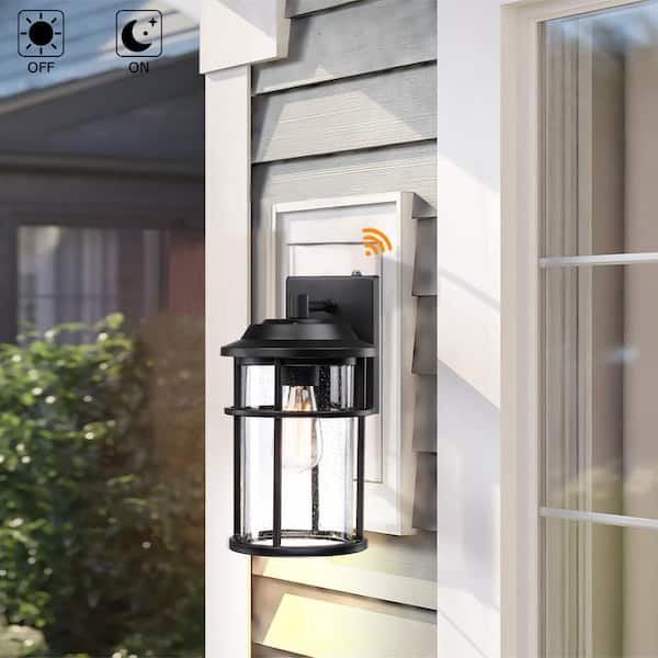13 in.1-Light Matte Black Hardwired Outdoor Wall Lantern Dusk to Dawn Wall Sconce Sensor Light with Clear Seeded Glass