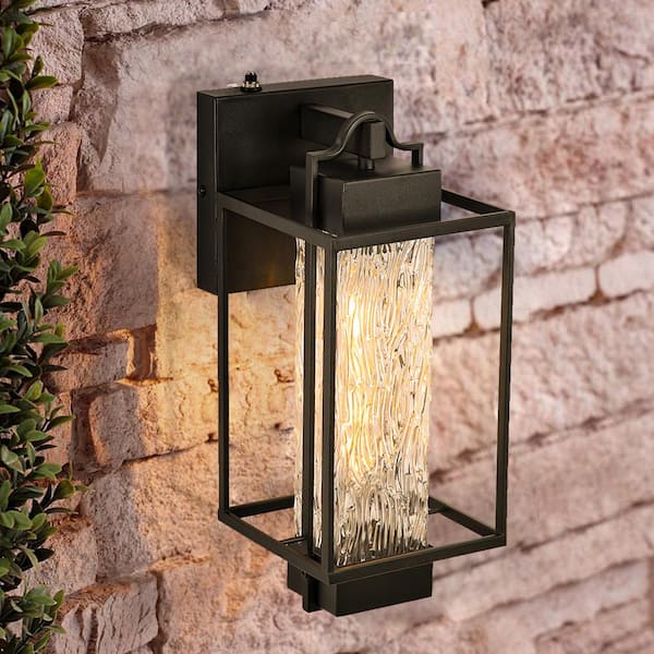 15.6 in. Matte Black Hardwired Dusk to Dawn Sensor Outdoor Wall Lantern Sconce with No Bulbs Included
