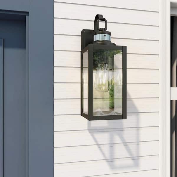 15 in. 1-Light Matte Black Motion Sensing Outdoor Wall Lantern Sconce Dusk to Dawn with Clear Glass