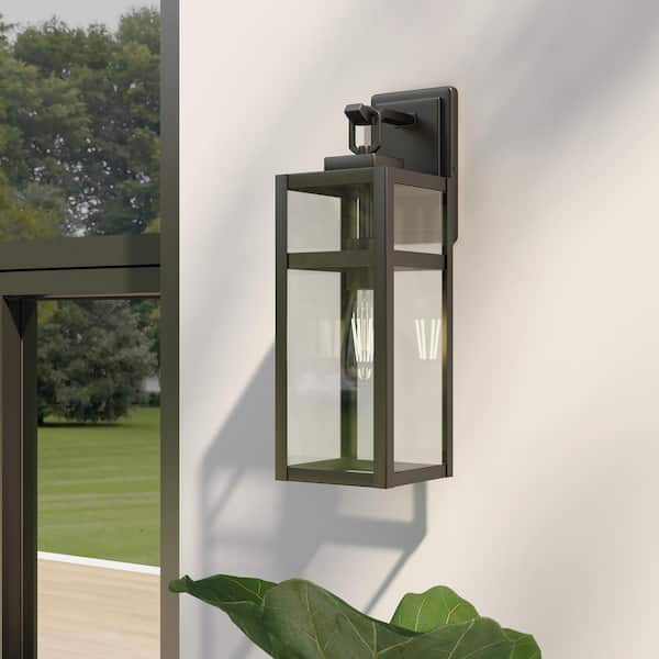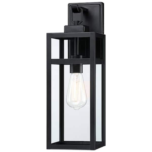 18 in. Matte Black Outdoor Wall Lantern Sconce with Clear Glass