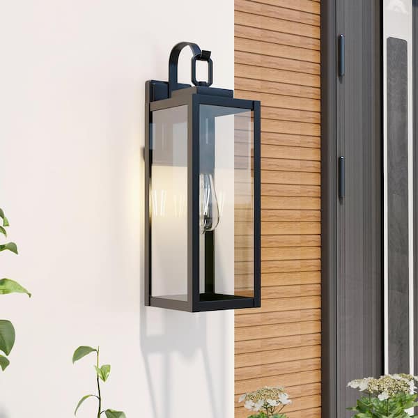 22.5 in. 1-Light Matte Black Hardwired Outdoor Wall Light Lantern Sconce with Clear Glass Shade