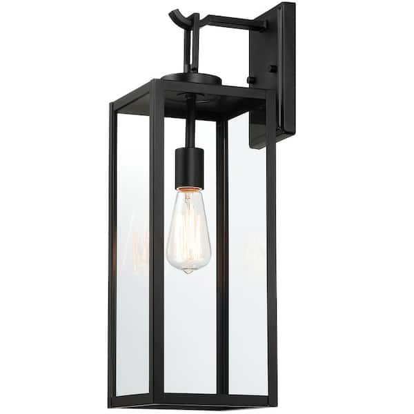 22 in.1-Light Matte Black Hardwired Large Outdoor Wall Lantern Sconce Classic Cage with Clear Glass