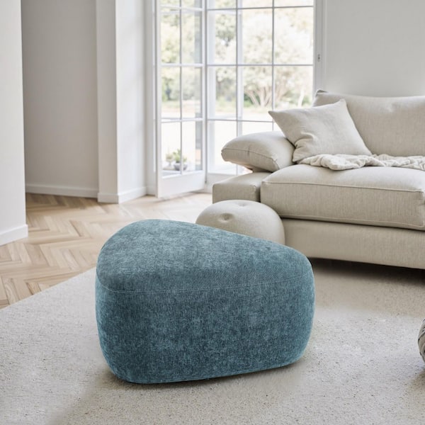 27 in. Wide Modern Blue Cheese Block Design Cotton Home Triangle Cocktail Ottoman (Set of 1)