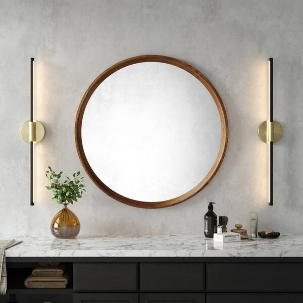 28.3 in. 1-Light Gold and Black Modern Integrated LED Vanity Light Bar Rotatable Bathroom Light (2-Pack)