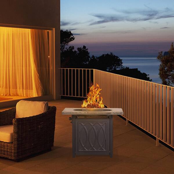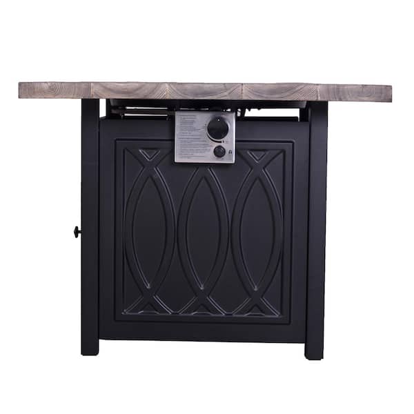 28 in. x 25 in. Square Outdoor Propane Fire Pit Table Faux Wood Black Metal base 50000 BTU