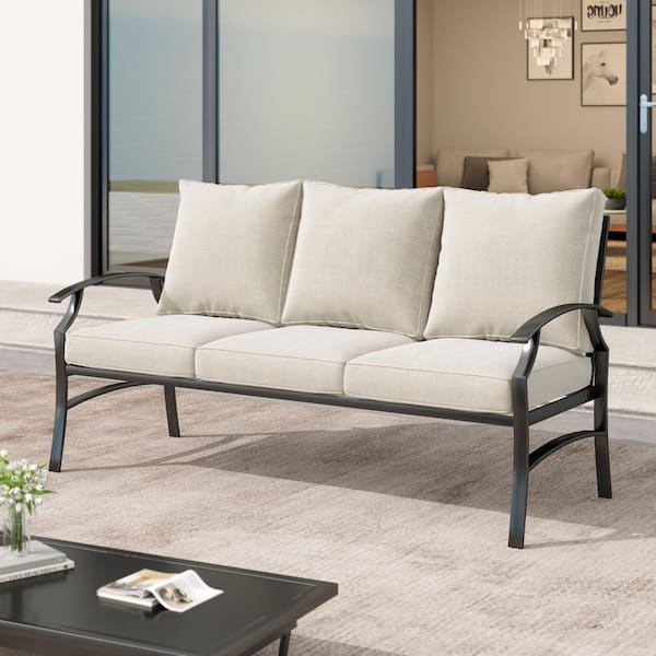3-Seat Metal Outdoor Patio Sofa Sectional Couch with Beige Cushions