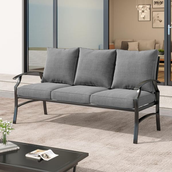 3-Seat Metal Outdoor Patio Sofa Sectional Couch with Gray Cushions