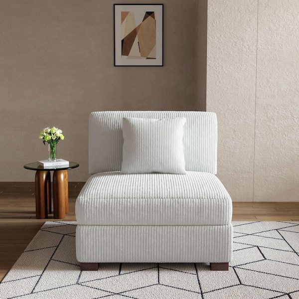 36 in. Beige Rectangle Corduroy Polyester Sectional Center Armless 1-Seat Sofa with One Pillow