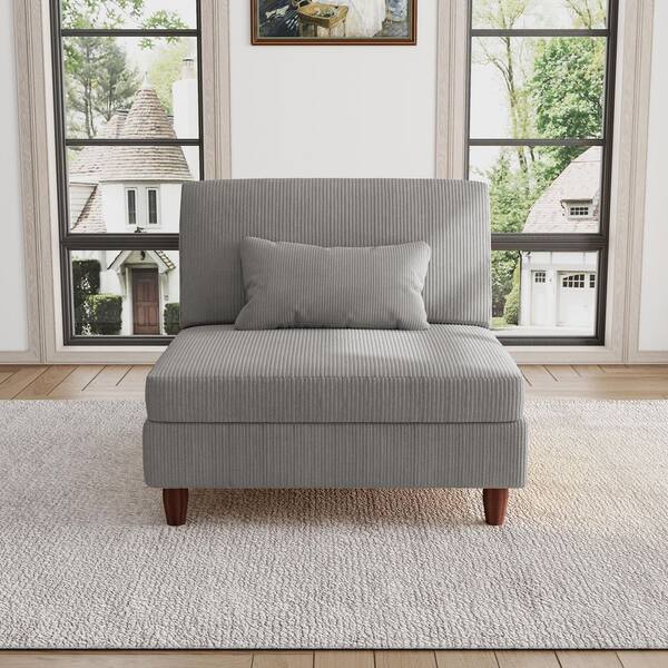 37.3 in. Luxury Armless Corduroy Polyester Rectangle Sectional Center 1-Seat Sofa in Light Gray (Set of 1)