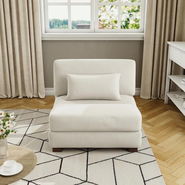 38 in. Armless Corduroy Rectangle Sectional Center 1-Seat Sofa in Beige