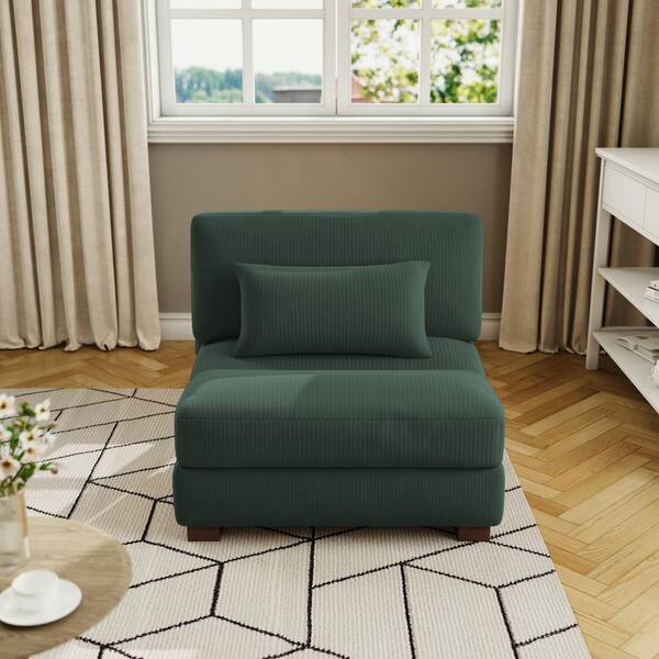 38 in. Armless Corduroy Rectangle Sectional Center 1-Seat Sofa in Hunter Green