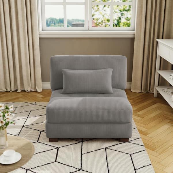 38 in. Armless Corduroy Rectangle Sectional Center 1-Seat Sofa in Light Gray