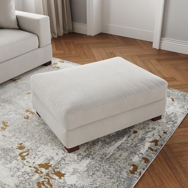 41.5 in. Beige Corduroy Fabric Rectangle Ottoman with Wood Legs
