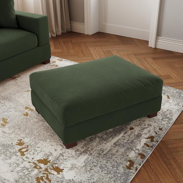 41.5 in. Green Corduroy Fabric Rectangle Ottoman with Wood Legs