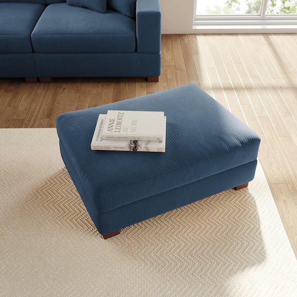 41.5 in. Navy Blue Corduroy Fabric Rectangle Ottoman with Wood Legs