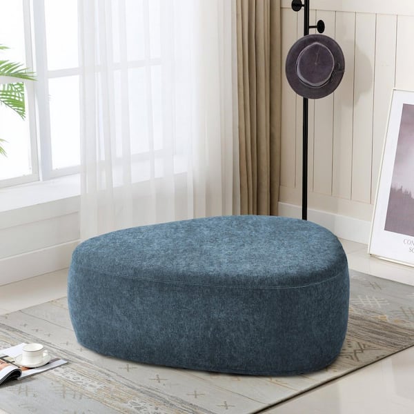 44 in. Wide Modern Blue Cheese Block Design Cotton Home Triangle Cocktail Ottoman(Set of 1)