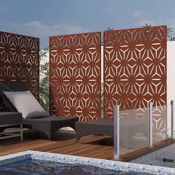 47.2 in W. Galvanized Steel Garden Fence Outdoor Privacy Screen Garden Screen Panels in Reddish Brown (2-Pack)